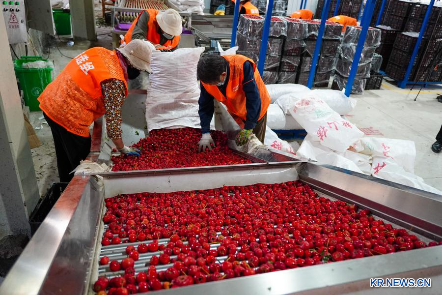 25일 류두진 주민이 산사 열매를 선별하고 있다. (사진/신화통신)