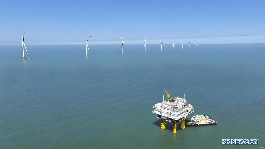 산둥(山東)성 둥잉(東營)시의 보중(渤中) 해상 풍력발전 프로젝트. (사진/신화통신)